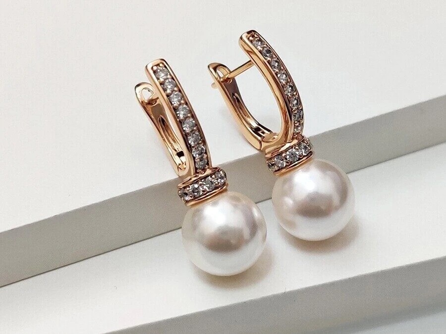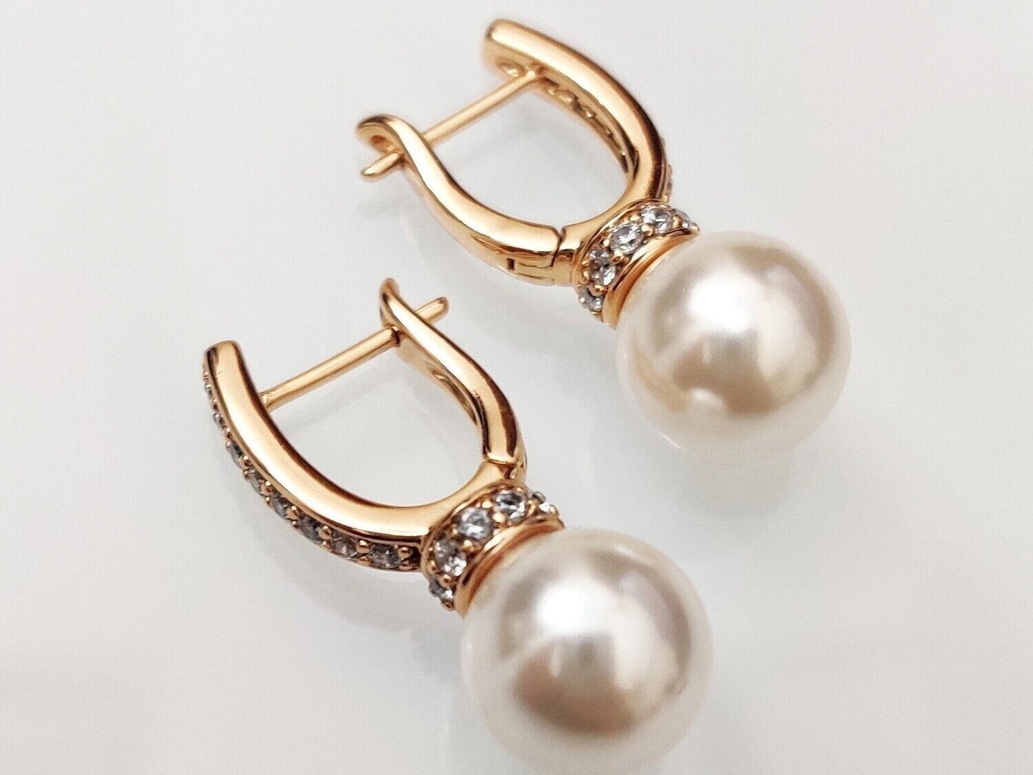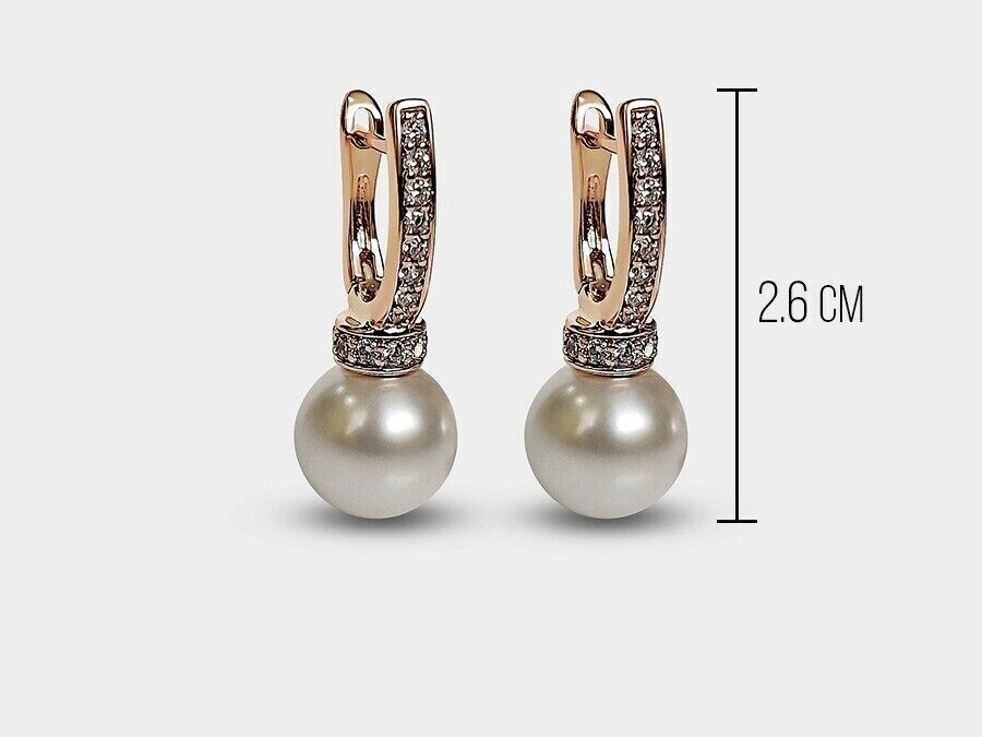 Материал изделия: ювелирный сплав Размер: 2.6 смразмер жемчужины 1 см Вид(модель) сережек: Английский замочек Красивые серьги с благородными цирконами изготовлены из специального гипоаллергенного ювелирного сплава Комментарии к товару