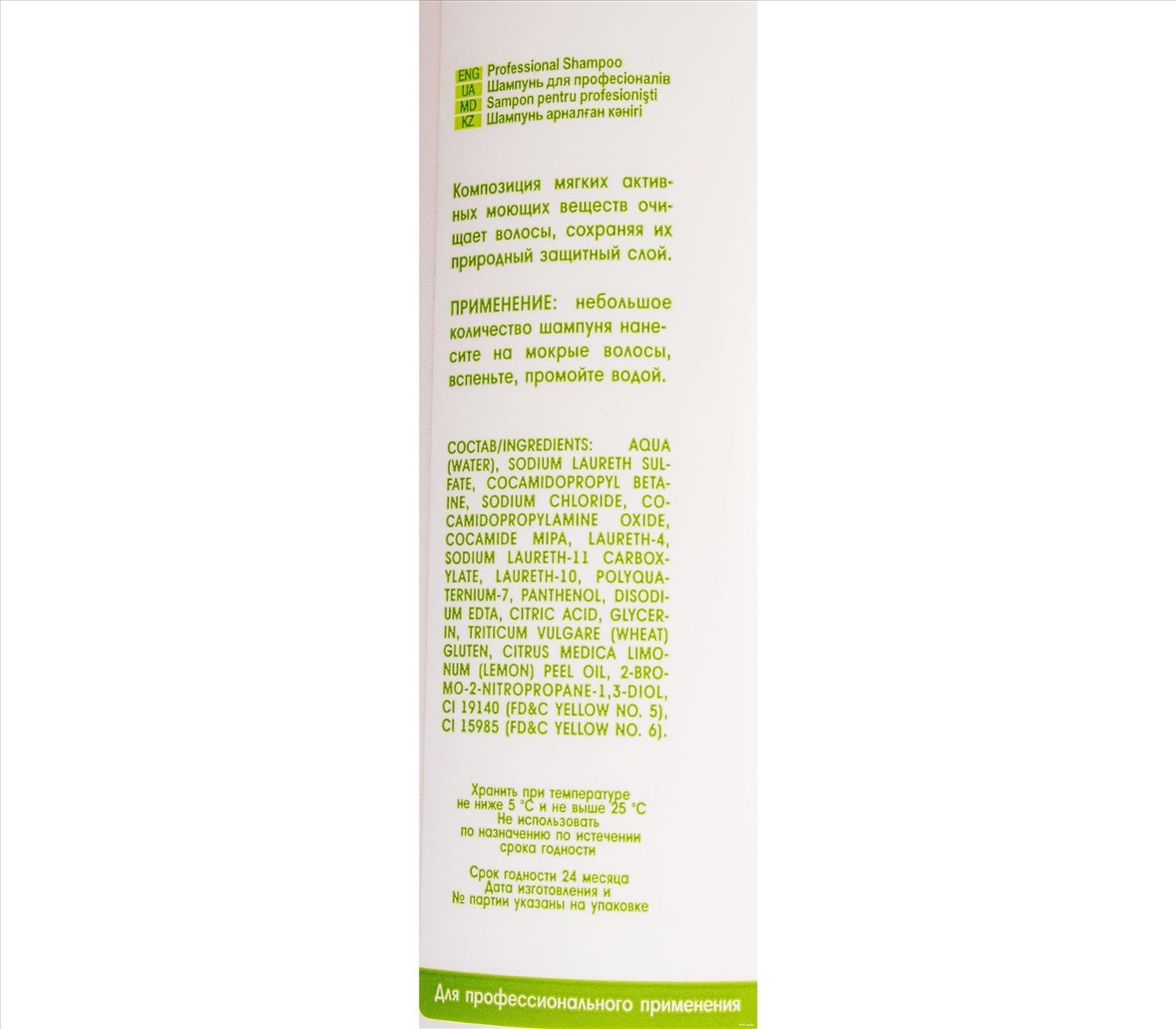 Бренд: Белита; Изготовитель: СП "Белита" ООО, Республика Беларусь, 220089, г. Минск, ул. Декабристов, 29а; Производитель: Белита; Серия: Professional line; Тип волос: Для всех типов; Упаковка: Флакон