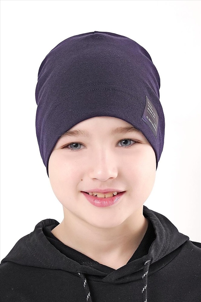 Шапка однослойная без отворота. Декорирована стильной нашивкой.Идеальный вариант на осень, весну. Размер 52-54 Состав: 95% Хлопок, 5% Эластан