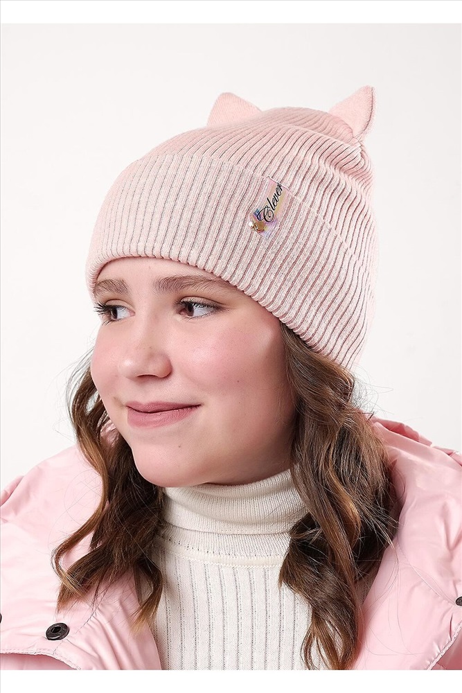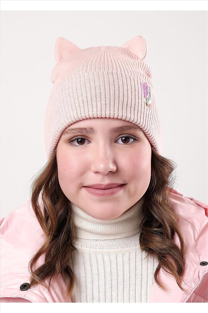 Детская двойная шапка для девочек с отворотом, декорирована ушками. Выполнена из мягкой пряжи, декорирована стильной нашивкой в височной зоне. Идеально подойдёт для осени- весны. Размер 54-56 Состав: 44% Вискоза, 28% Нейлон, 28% Полиэстер