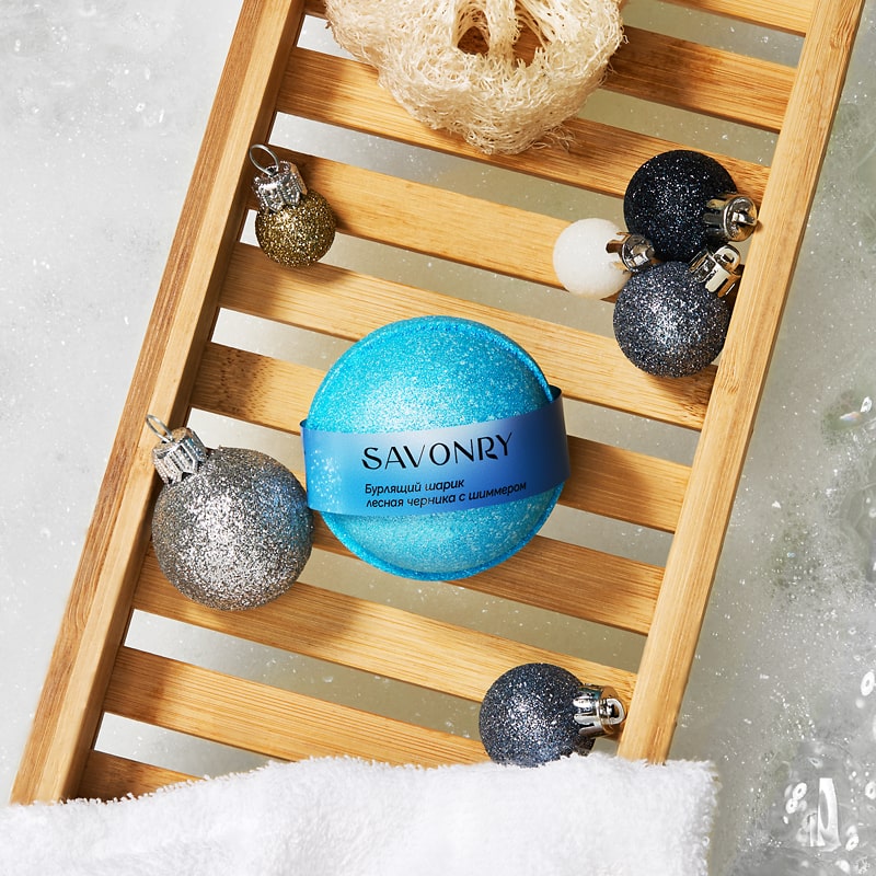 Советы по использованию: Опустите шарик в ванну в тот момент, когда в нее набирается вода, дождитесь пока он с шипением растворится. Бурлящий шарик Лесная черника с шиммером превратит вашу ванну в спа-ритуал. Насыщенный аромат спелых ягод, мерцающие переливы шиммера создают неповторимое впечатление и чувство релаксации, а питательные масла миндаля и виноградных косточек мягко ухаживают за кожей, даря ей ощущение увлажнения. Идеальное средство для того, чтобы побаловать себя после долгого дня и наполнить пространство сладким ароматом лесной черники. Достоинства: насыщенный ягодный аромат; эффектное мерцание шиммера; питание и смягчение кожи благодаря маслам. Комментарии к товару