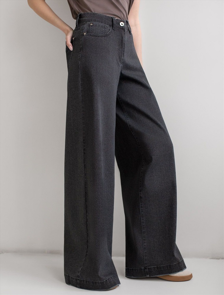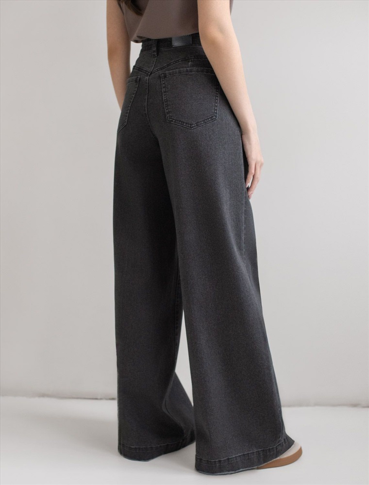 Плотность: 12,5 OZ Параметры модели на первом фото: Рост 172, бюст 81, талия 59, бедра 88 Размер товара на первом фото: 42 Стильные расклешенные джинсы черного цвета из эластичного денима созданы для современного образа и максимального комфорта. При производстве джинсов применена технология «вареные швы», которая основана на локальном вымывании красителя из плотных участков ткани — сгибов и швов — за счет механического воздействия во время промышленной стирки. Стоун вошинг - энзимная стирка с камнями. Камни воздействуют на ткань, выбивая краску на швах, создавая контрастные мраморные потертости и мягкость. Премиальный материал обеспечивает надежность и приятные ощущения при носке, а добавление эластичных волокон делает посадку особенно удобной. Высокая талия и расширенный крой к низу визуально вытягивает рост и подчеркивает достоинства, делая силуэт женственным, а декоративная стирка добавляет акцент. Эти широкие джинсы - оличное решение для девушек размера полюс сайз. Детали продуманы до мелочей: мягкий пояс не сдавливает живот, задние карманы и шов расположены на правильном уровне, что бы визуально подтянуть фигуру, а плотный джинс сохраняет форму после длительной носки и частых стирок. Трендовые джинсы свободно ложатся по ноге и создают эффектный образ на каждый день или для особых случаев.Такая модель подходит на любое время года, легко комбинируются с обувью на каблуке или кроссовками — универсальность фасона позволяет создавать образы как для офиса, так и для прогулок по городу. Комментарии к товару