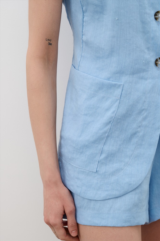 Состав: лен 62% вискоза 38% Шорты с высокой из натурального высококачественного льна, голубого цвета, подойдут для создания непринужденного городского или домашнего образа. Шорты можно дополнить короткой или длинной рубашкой Ypsilon на пуговицах. Такой комплект—идеальный  вариант для тех, кто ценит качество и минимализм. Сделано в России на собственном производстве.