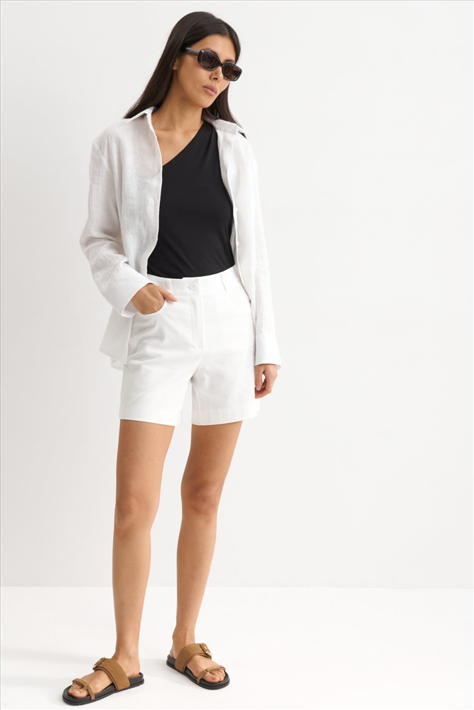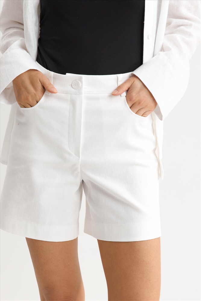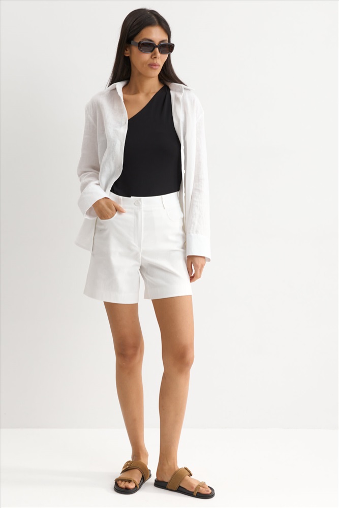 Состав: 95% хлопок 5% эластан Длина: 40 см. Цветовая гамма: Молочный Силуэт: Прямой Принт: Нет Коллекция: Лето #4 Базовые шорты из мягкого денима. Модель прямого силуэта на притачном поясе. По переду боковые карманы, застежка-гульфик. По спинке кокетка, накладные карманы. Комментарии к товару