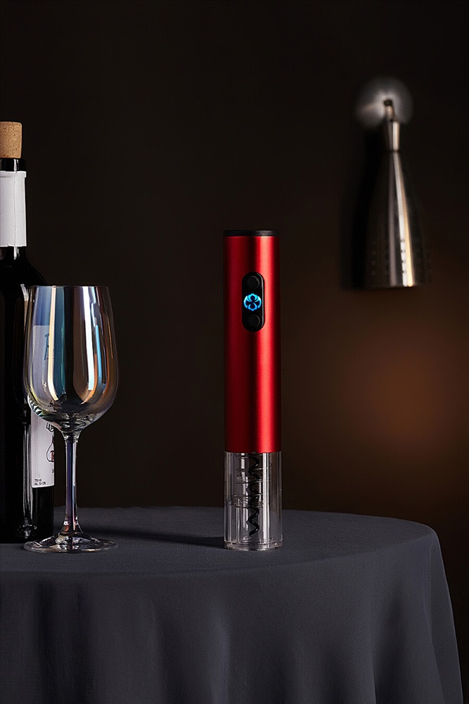 Портативный электроштопор, работающий от батареек или аккумуляторов. Извлечение пробки обеспечивает одно нажатие кнопки. Для уделения защитной пленки с бутылки в комплект входит специальный нож. Корпус штопора выполнен из гладкого приятного на ощупь материала, на котором не остаются следы от пальцев.