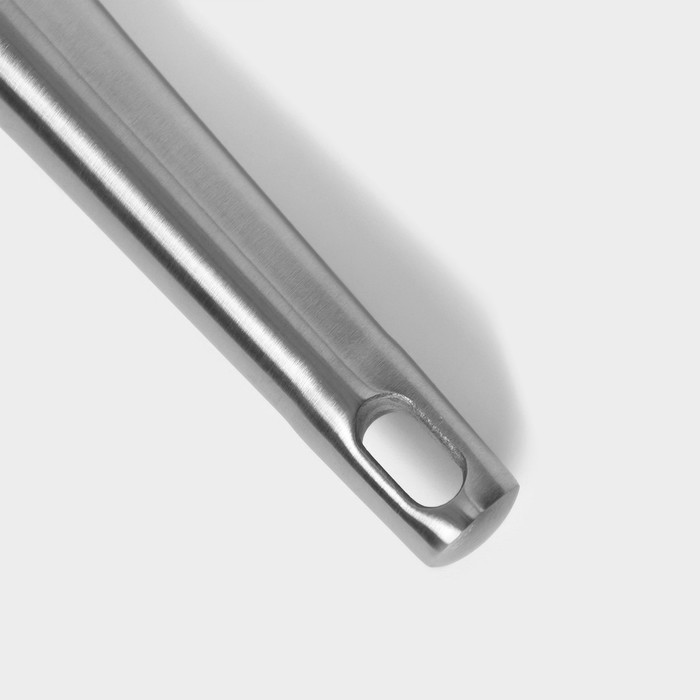 Шумовка изготовлена из высококачественной нержавеющей стали, что гарантирует ее прочность и долговечность. Она отлично подходит для снятия накипи, пены и масла с супов, бульонов, компотов и других блюд. Шумовка имеет эргономичную ручку, обеспечивающую надежный хват при использовании.