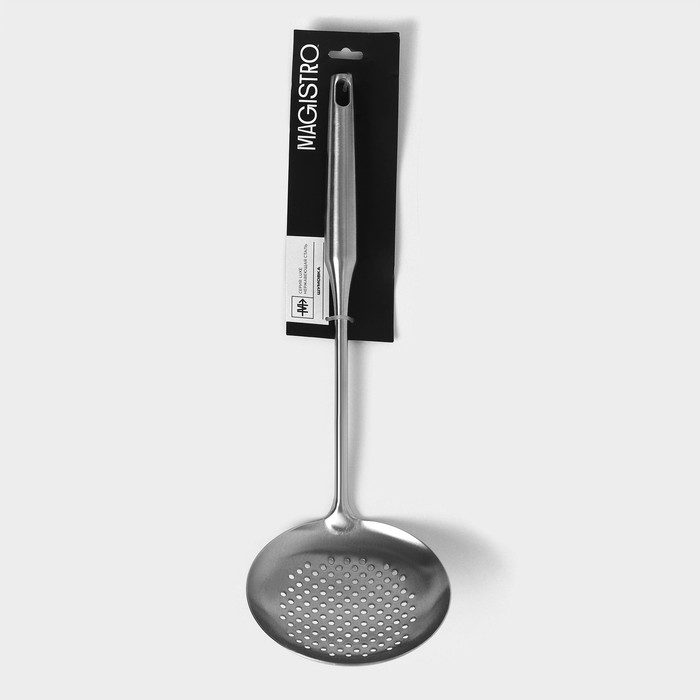 Производитель: Magistro; Габариты: 37 x 12,5 x 8,5; Страна: Китай; В боксе: 60 шт; Состав: Нержавеющая сталь; Материалы: нержавеющая сталь; Фасовка: по 1 шт; Индивидуальная упаковка: Подвес; Габариты товара: 37 см × 12,5 см × 8,5 см; Сертификат: СТР; Цвет: Серебристый; Диаметр черпала, см: 12,5; Длина ручки, см: 28,5; Материал ручки: Нержавеющая сталь; Материал: Нержавеющая сталь; Можно мыть в посудомоечной машине: Да