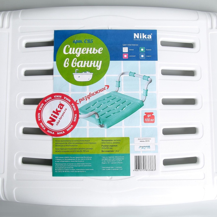 Приспособление изготовлено из экологически чистых материалов. Металлический каркас обеспечивает надежную фиксацию и удивительную прочность (изделие способно выдерживать вес до 100 кг), а пластик с массажными элементами сделает процесс купания более приятными.