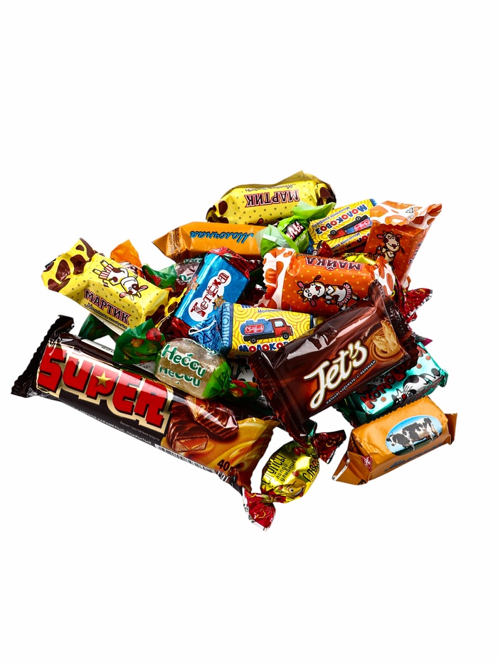 * В наборе 24 разноцветных конфеты в привлекательной упаковке.