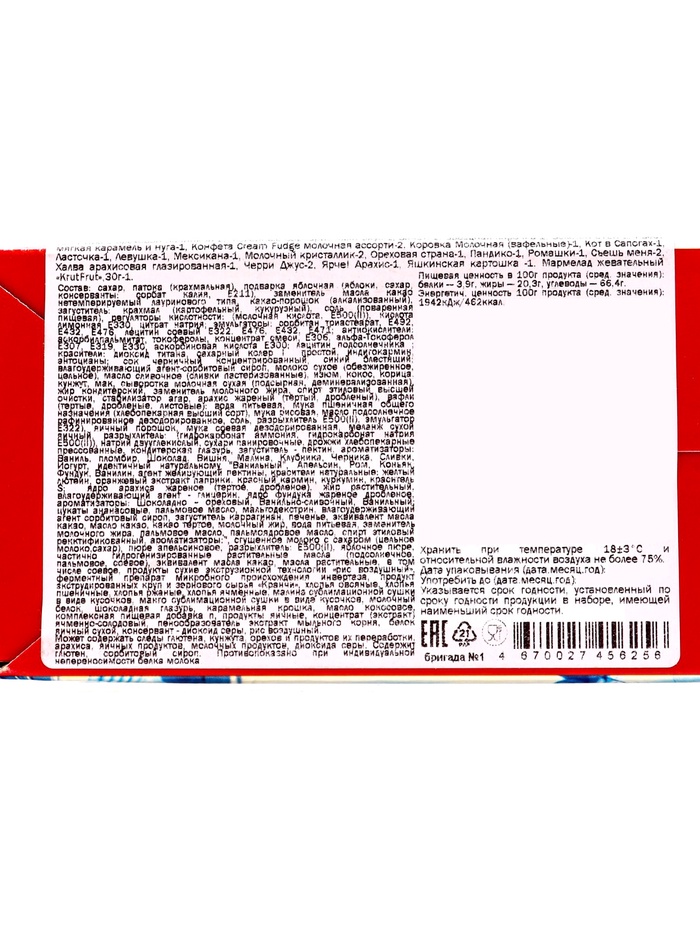 Габариты: 17 x 7 x 25; Страна: Россия; В боксе: 12 шт; Состав: См. на упаковке; Материалы: см. на упаковке; Фасовка: по 1 шт; Индивидуальная упаковка: Цветная картонная коробка; Сертификат: ЕАС; Цвет: МИКС; Для кого: Унисекс; В наборе, шт.: 39; Вес нетто, г: 700; Вид упаковки: Коробка картонная; Тематика праздника: Рождество, Новый год; Адресат: Мальчику, Девочке; Составляющие набора: Конфеты; Возраст: Для детей