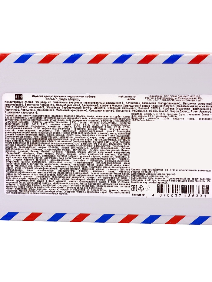 * Общий вес сладостей — 400 г, идеален для совместного угощения и праздничного настроения.