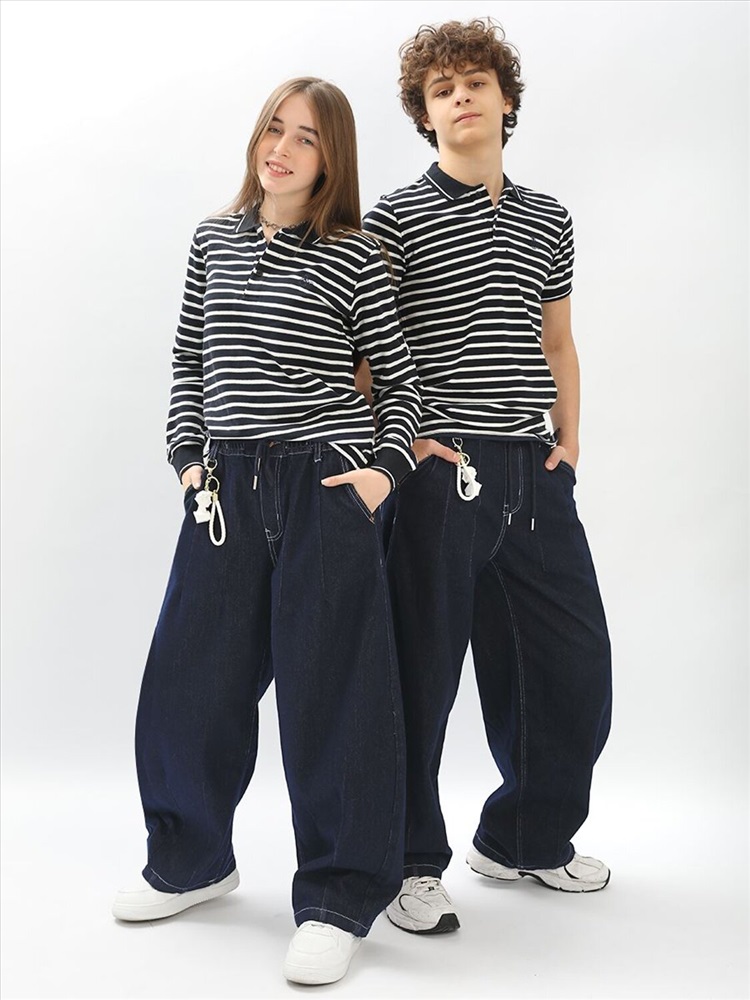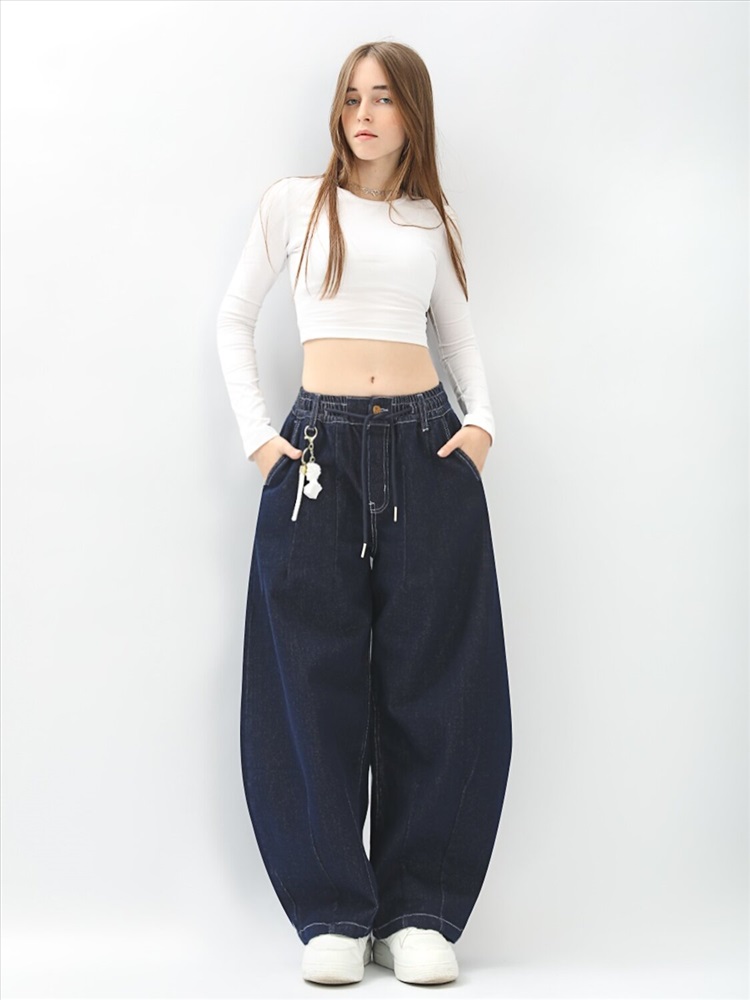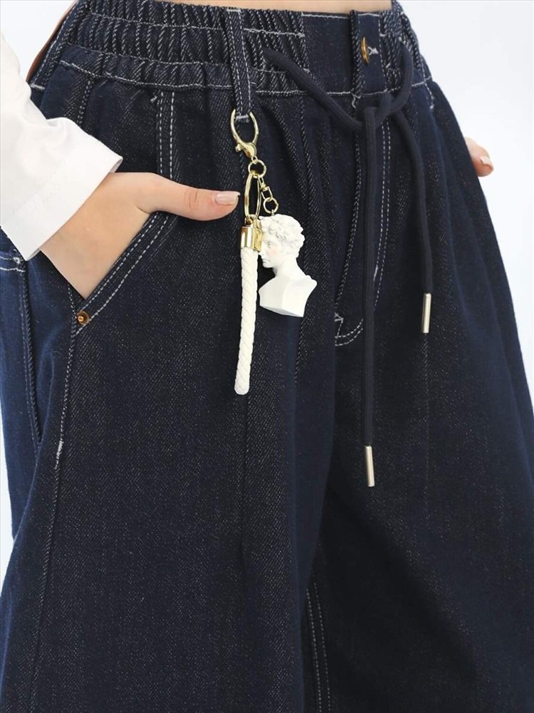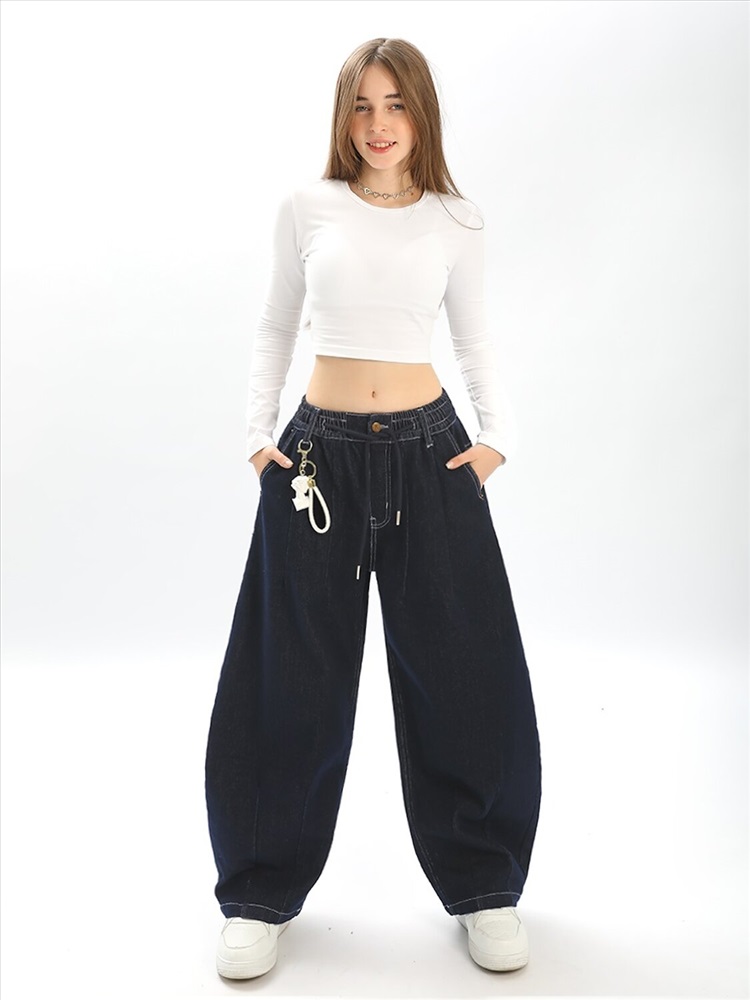 Джинсы Соль&Перец. Трендовая модель из эластичного денима, на широкой резинке, без молнии и пуговиц. В комплекте с джинсами стильный брелок.