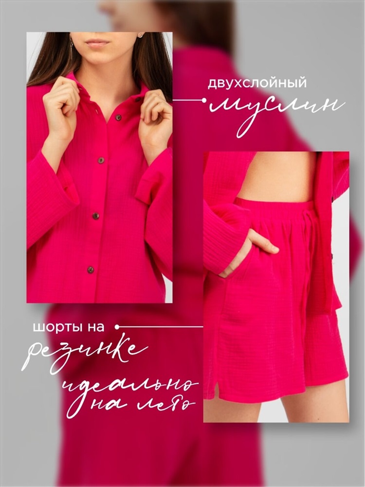 Размер 158-44 (рост 158 см) длина рубашки 64 см, ОГ 88 см, длина рукава 56 см, длина шорт 38 см, ОТ 62 см, ОБ 90 см.