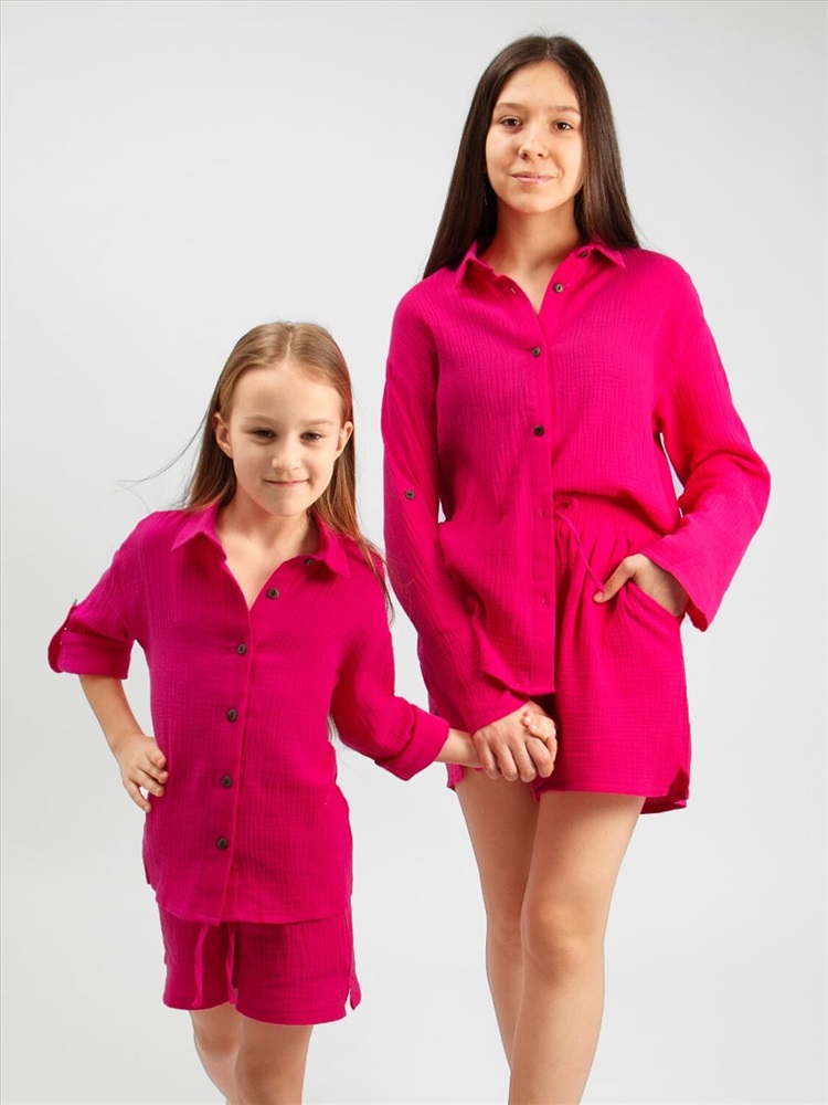 Размер 146-40 (рост 146 см) длина рубашки 60 см, ОГ 84 см, длина рукава 52 см, длина шорт 36 см, ОТ 58 см, ОБ 86 см.