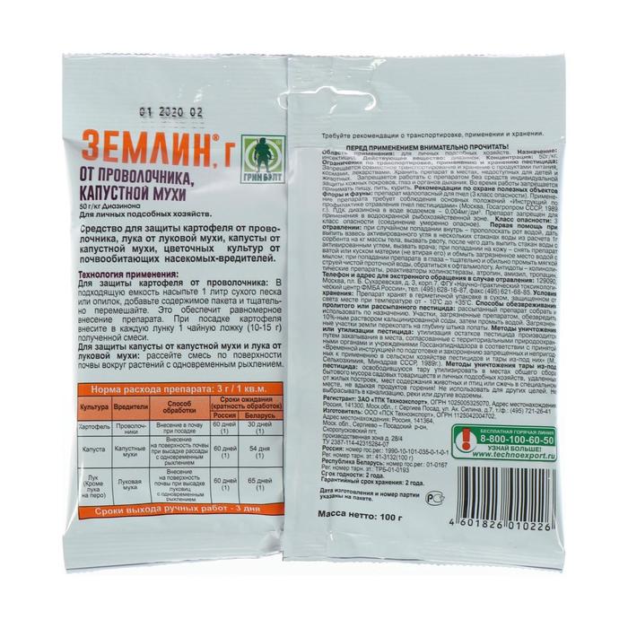 Специальное средство от проволочника на картофеле и других корнеплодах. Препарат смешивают с песком или опилками и вносят в почву при посадке картофеля. Также успешно применяется от капустной мухи, почвообитающих вредителей цветов.