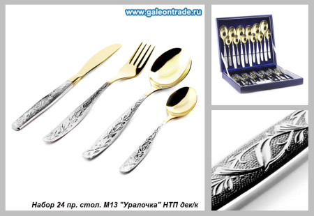 Столовые приборы 24 предмета Уралочка М13 / н11 /уп 12/ НТП, декоративная коробка