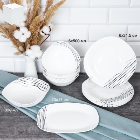 Столовый набор 14 предметов квадратный Волна / SQ-14/8565759 (61026-1) /уп 2/