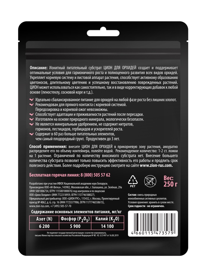 Ионитный субстрат для орхидей на основе цеолита, 250 г — это крупная фасовка специализированного компонента для орхидей растений. Продукт предназначен для создания рыхлой, воздухопроницаемой среды, критически важной для здоровья воздушных корней и устойчивого цветения орхидей.