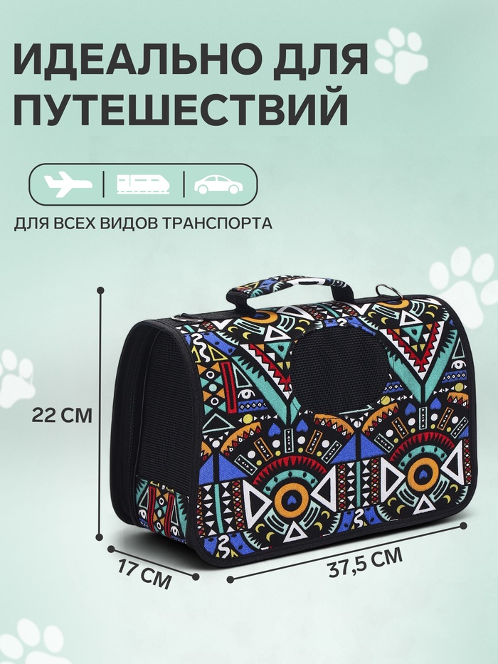 Компактная сумка-переноска с ярким рисунком и продуманной конструкцией станет надежным спутником для маленьких питомцев во время прогулок или путешествий.