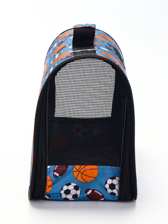 Компактная переноска спортивного дизайна с продуманной эргономикой идеально подходит для маленьких питомцев. Голубой цвет с разноцветными элементами делает её стильным аксессуаром.