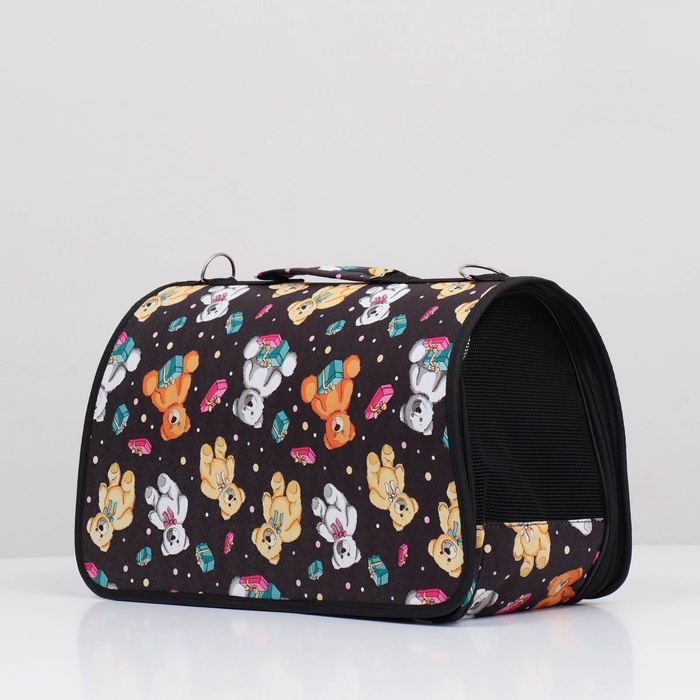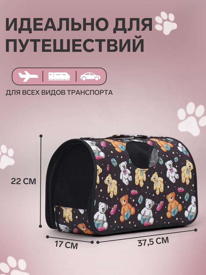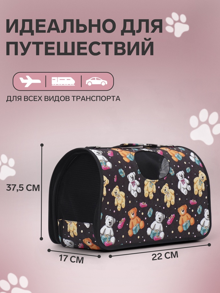 Сумка-переноска «Плюшевые медведи» сочетает в себе функциональность и эстетику. Её каркасная конструкция обеспечивает устойчивость, а прочные материалы гарантируют безопасность питомца. Сумка легко чистится и компактно складывается, что делает её удобной для хранения и транспортировки.