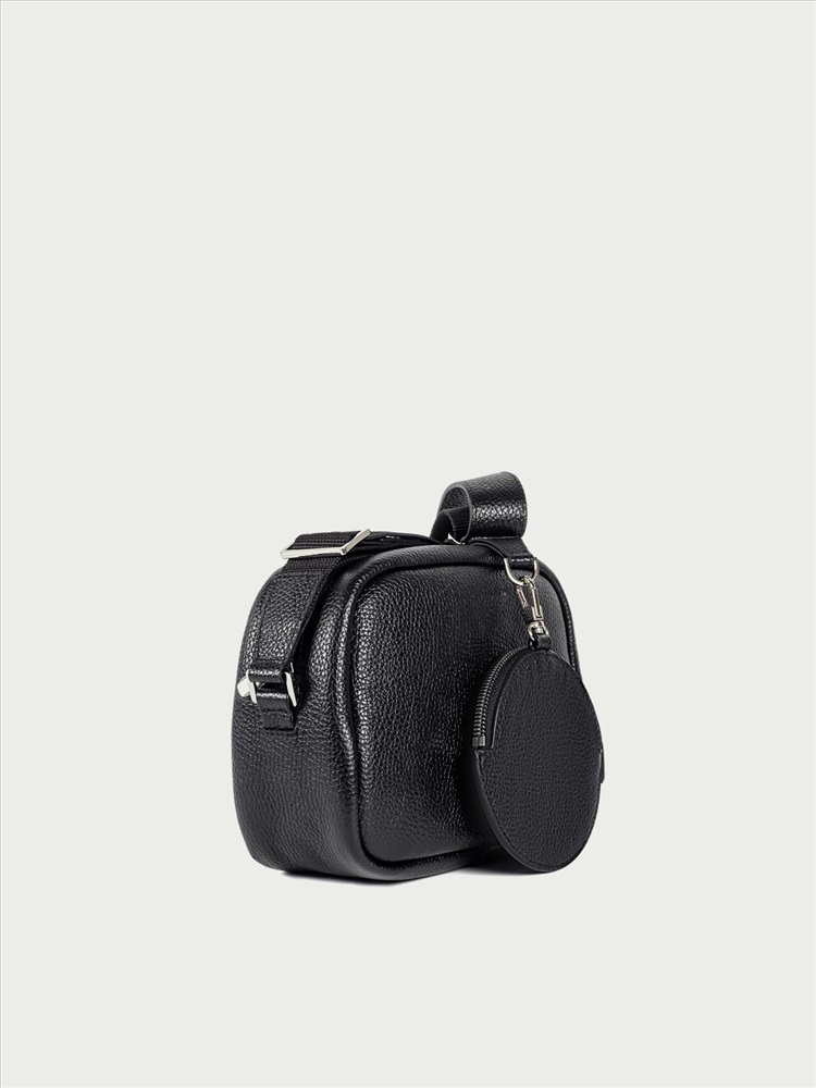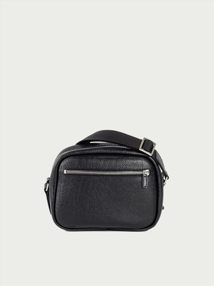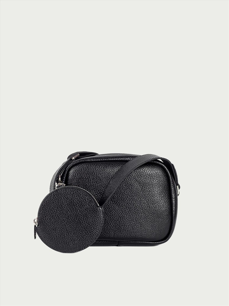 Женская сумка выполнена из натуральной зернистой кожи. Закрывается на металлическую молнию. Внутри основное отделение и накладной карман. Снаружи на лицевой стороне имеется карман на металлической молнии.Отличительной чертой этого изделия является монетница на молнии, которая пристегивается к плечевому ремню. Плечевой ремень регулируется (min 960мм, max 1320мм). Цвет фурнитуры: никель. Внешний размер: 210x165x080. Вмещает в себя формат А6. Упаковка: мешок из спанбонда.