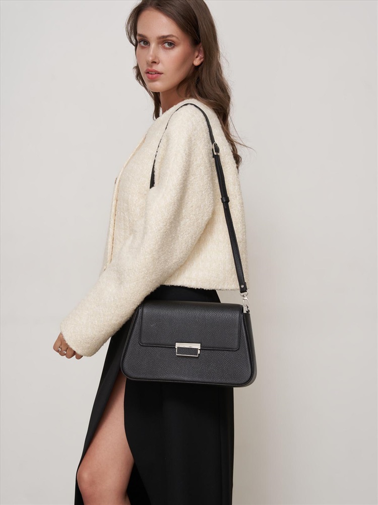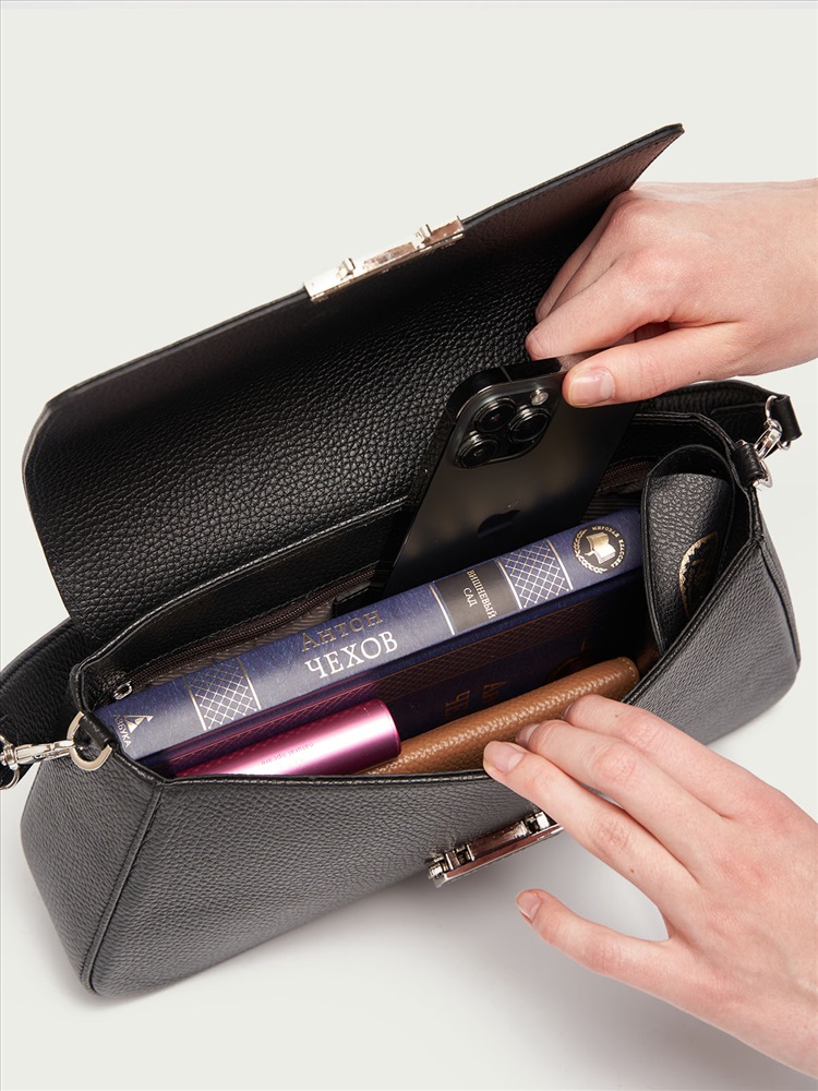 Женская сумка выполнена из натуральной кожи. Закрывается на клапан с замком. Внутри основного отделения два накладных кармана и вместительный карман на молнии. Имеется ручка для ношения в руке и регулируемый плечевой ремень (min 1140мм, max 1300мм). Цвет фурнитуры:никель. Внутренний материал: полиэстер. Внешний размер: 300х175х075. Вмещает в себя формат А5. Упаковка: мешок из спанбонда.