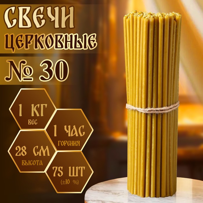 Габариты: 28 x 8 x 7; Страна: Россия; В боксе: 20 набор; Состав: Воск 50%, высокоочищенный пищевой парафин 50%; Материалы: воск, высокоочищенный пищевой парафин; Фасовка: по 1 набор; Индивидуальная упаковка: Стрейч-пленка; Сертификат: Не подлежит сертификации; Набор: Да; Цвет: Бежевый; Высота, см: 28; Вес, кг: 1; Время горения, ч: 2,5; Высота свечи, см: 29,5; Тематика праздника: Крещение, Пасха; Форма свечи: Цилиндр; Ароматизированные: Нет; Ручная работа: Да; Темпер. ограничение НЕ НИЖЕ ℃: -10; Темпер. ограничение НЕ ВЫШЕ ℃: +25; Номер: 30; Состав: Парафин, Воск