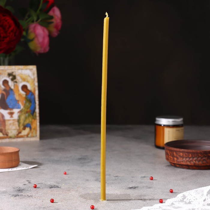 Эту свечу вы сможете использовать как в церковном, так и в домашнем обиходе для религиозных обрядов. Она не содержит ароматических примесей и красителей.