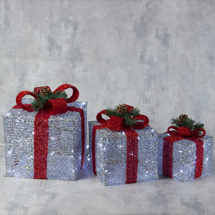 Разнообразные световые фигуры - это прекрасный вариант праздничного оформления к любому торжеству, а также отличное дополнение интерьера. Сегодня такие фигуры довольно активно используются в качестве светового оформления различных кафе, торговых центров, магазинов и ночных клубов, равно как и для создания оформления в доме, офисе, и даже на улице. Знакомые на первый взгляд фигурки снабжены одним или несколькими светодиодами, что превращает их из привычных в сказочные. Фигуры в виде подарков украсят помещение и создадут атмосферу праздника. Вы можете поставить их под ёлкой или же в свободное место. Кубики выглядят эффектно не только во включённом состоянии в темноте, но и днём. Они дополнены цветными лентами и другими атрибутами Нового года. Корпусы изготовлены из лёгких материалов: изделия просто переносить. Современные диоды не нагреваются, в отличие от ламп накаливания, благодаря чему фигура пожаробезопасна.