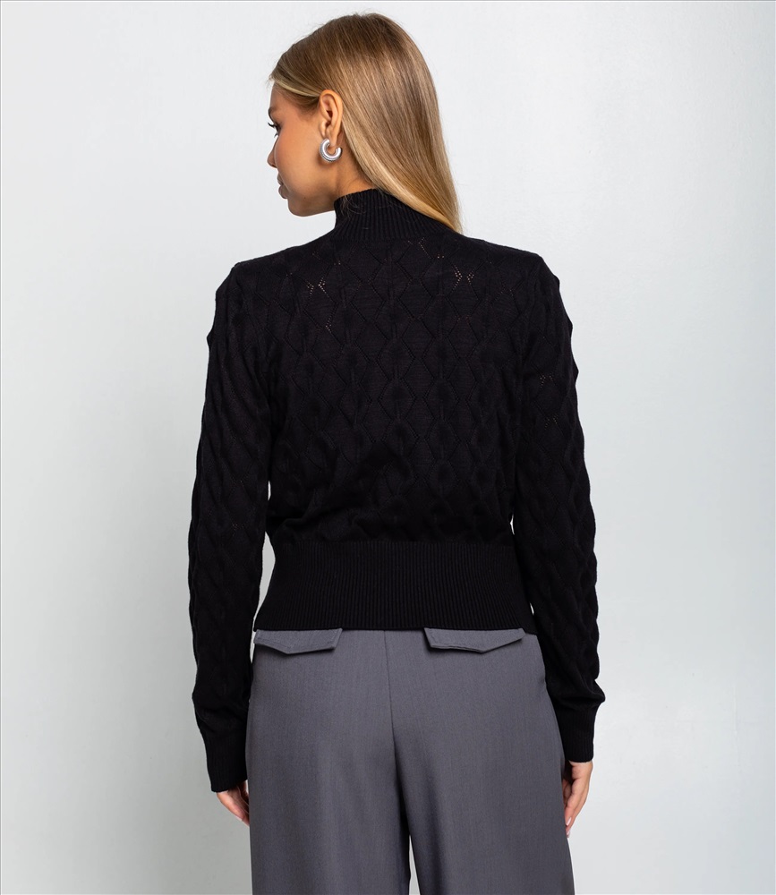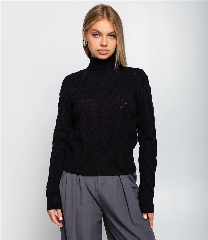 Пол: Женский Страна производитель: Китай Сезон: Осень Материал: Футер, Шерсть, Полиэстер Свитер – это одежда, которая подчеркивает привлекательность и элегантность каждой представительницы прекрасного пола. Свитер прямого полуприталенного силуэта длиной до линии бёдер с плотной резинкой по низу, которая слегка подчёркивает талию; длинные слегка облегающие рукава с узкими манжетами той же рубчатой фактуры; высокая узкая горловина‑стойка средней высоты, плотно прилегающая к шее, выполнена в мелкую рубчатую вязку; основное полотно с рельефным ажурным рисунком ромбовидной геометрии, сформированным сочетанием плотных и открытых участков вязки с вертикальными нитевыми стежками между элементами, создающими лёгкую «сетчатую» глубину; широкая резинка по низу и плотные манжеты обеспечивают усадку и удержание тепла, контрастируя с ажурной текстурой. Для пошива использована ткань 70% акрил, 20% щерсть и 10% полиэстер, которая характеризуется отличным качеством. Даже после многократных стирок изделие не утратит первоначальной красоты. Вы сможете носить его с радостью. Обратите внимание на цвет. Он является насыщенным и полностью соответствует фотографии на сайте. Чтобы вы были уверены в размере, мы представили на странице таблицу. Воспользовавшись ею, вы сможете сами обмерить себя и удостовериться. Предложенная нами цена является приемлемой. Не откажите себе в удовольствии быть элегантной! Рост модели 168 см., 89-63-90. Вы можете заказать онлайн презентацию на интересующие Вас модели. Наши менеджеры свяжутся с Вами и проведут индивидуальную видеотрансляцию, помогут составить заказ и ответят на Ваши вопросы. Комментарии к товару