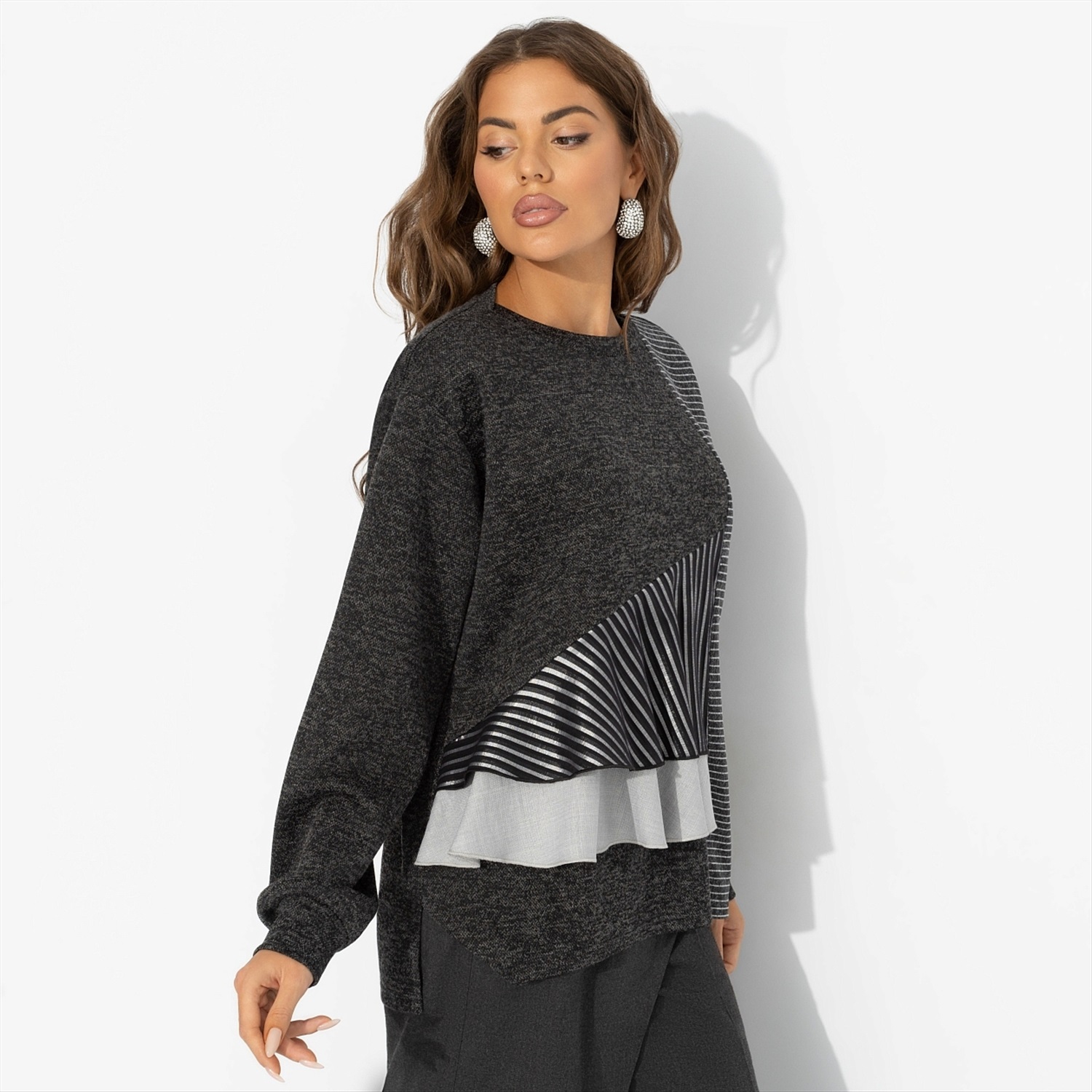 Динамика, неожиданный твист ‒ как в streetstyle-хронике с последних недель моды. Этот свитшот ЧАРУТТИ уходит от привычных рамок: микс полос, фактур и архитектурных линий притягивает взгляд и делает образ запоминающимся. Каждый штрих ‒ манифест индивидуальности. Ваш стиль навсегда останется в памяти тех, кто однажды вас увидел. Асимметричный свитшот из комбинации тканей для поклонниц высокой моды, ready-to-wear и дерзких визуальных экспериментов! Комментарии к товару