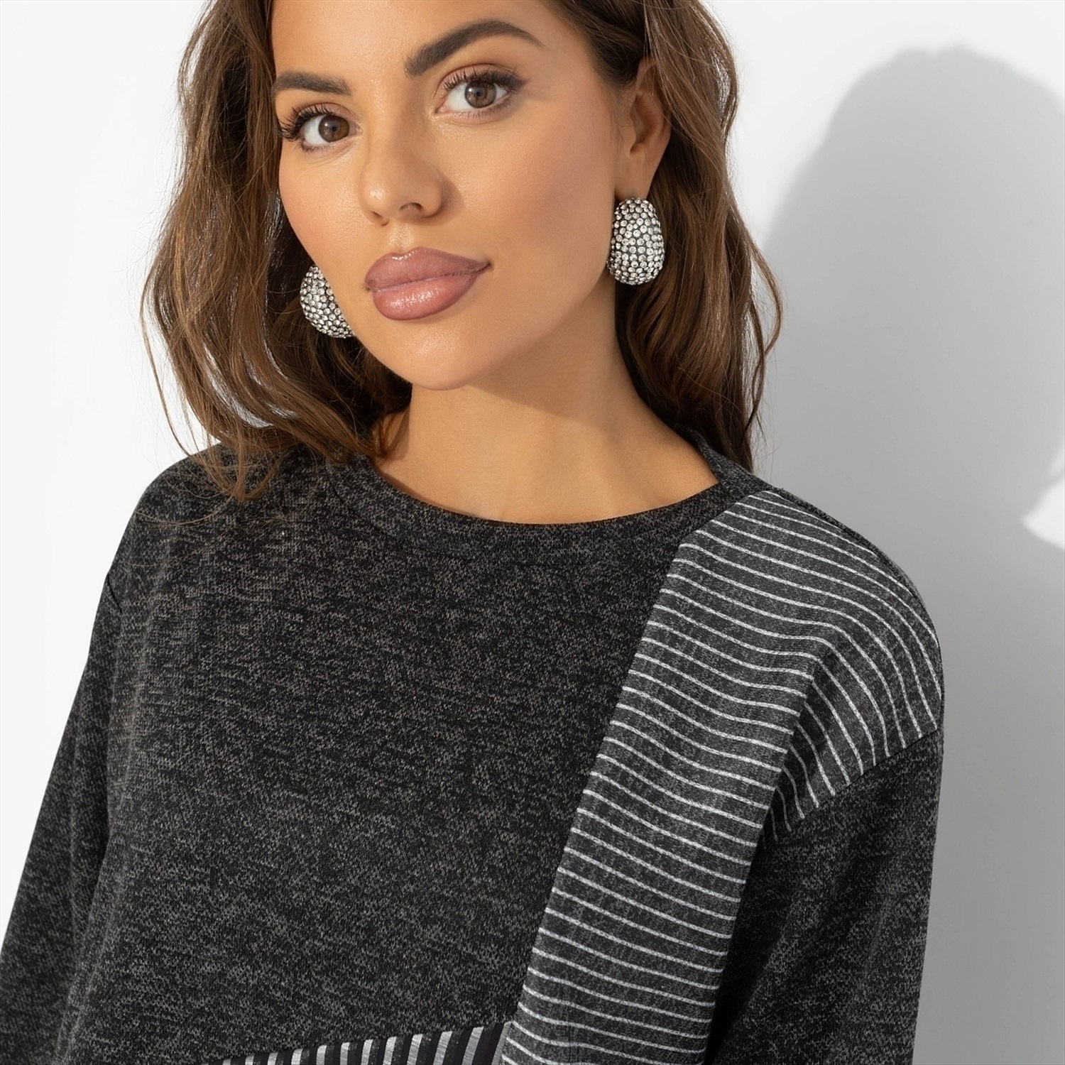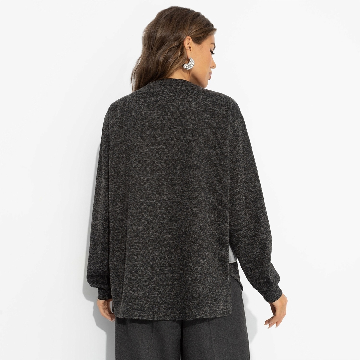 Состав: Трикотаж «меланж», бенгалин, блузочная жатка (65% п/э, 30% вискоза, 5% спандекс) Плотность ткани: Плотная Тип ткани: Трикотаж Вид застежки: Нет Декоративные элементы: Контрастная отделка Дополнительный цвет ткани: Серый Карманы: Нет Основной цвет ткани: Черный Отрезная талия: Нет Подклад: Нет Резинка по талии: Нет Рисунок/раппорт: Нет, все изделия идентичны Сезон: Круглогодичный Силуэт: Свободный