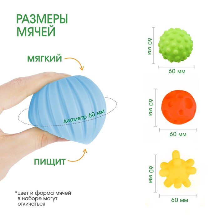 Мячики выполнены из приятного на ощупь материала, и малышам очень удобно держать их в руках.