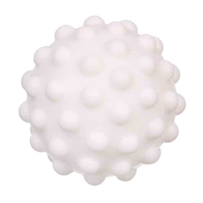 Мячики с рельефной массажной поверхностью способствуют развитию мелкой моторики и тактильных ощущений. Давление на фактурную поверхность мячиков стимулирует и благоприятно воздействует на нервные окончания, ответственные за большинство процессов в организме. Шарики имеют яркие цвета, которые способствуют развитию зрения, а пищалка внутри развивает слуховое восприятие.