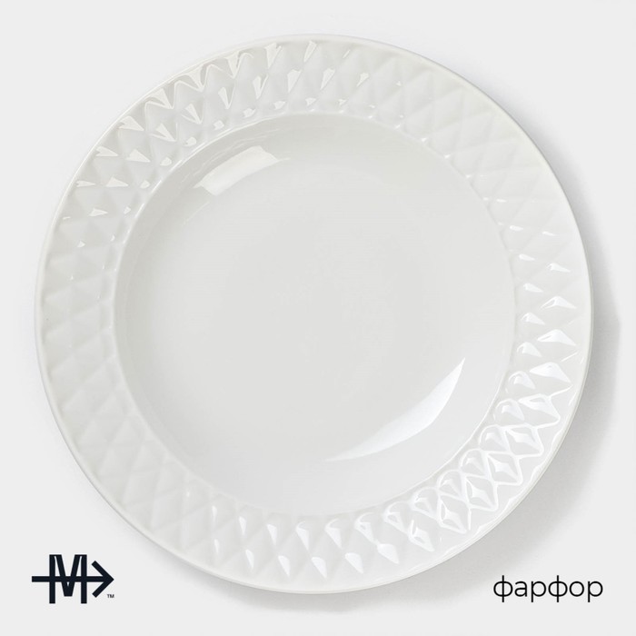 Производитель: Magistro; Габариты: 23,5 x 23,5 x 4; Страна: Китай; В боксе: 30 шт; Состав: Фарфор; Материалы: фарфор; Фасовка: по 1 шт; Индивидуальная упаковка: Без упаковки; Габариты товара: 23 см × 23 см × 4 см; Сертификат: СТР; Набор: Нет; Цвет: Белый; Диаметр, см: 23; Объём, мл: 800; Тематика: Однотонная; Рисунок: Нет; Материал: Фарфор; Вид тарелки: Плоская; Можно мыть в посудомоечной машине: Да; Можно использовать в СВЧ-печи: Да; Текстура: С рельефом; Особенности: Без особенностей; Матовая поверхность: Нет; Для горячего: Да