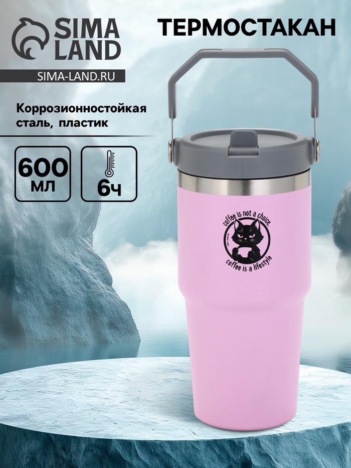 Производитель: Сима-ленд; Габариты: 20,5 x 11 x 10,5; Страна: Китай; В боксе: 25 шт; Состав: Пластик, коррозионностойкая сталь; Материалы: пластик, Коррозионностойкая сталь; Фасовка: по 1 шт; Индивидуальная упаковка: Коробка; Габариты товара: 8,5 см × 8,5 см × 19 см; Сертификат: СТР; Цвет: Розовый; Время сохранения тепла/холода, ч: 6; Объём, мл: 600; Рисунок: Да; Крышка: Да; Тематика праздника: Универсальная тематика; Материал: Нержавеющая сталь; Сменная вставка (рисунок): Нет