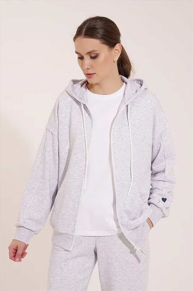Куртка спортивная из трикотажного полотна футер,на молнии. По горловине капюшон на подкладе со шнуром. Длинный рукав со спущенной линией плеча, нашивка.По низу рукава и изделия манжеты. Спереди карман кенгуру, принт.По пройме и шву рукава открытый срез. Состав: 57% Полиэстер, 43% Хлопок