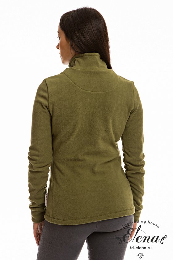 Толстовка из флиса с воротником-стойкой, втачными рукавами и короткой застежкой на молнию. Спереди и на спинке декоративная отстрочка по швам соединения деталей изделия.