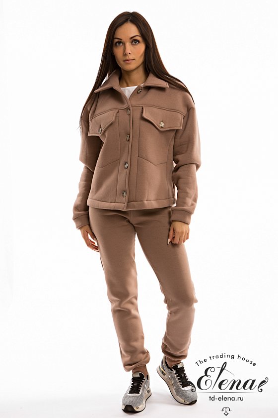 Тёплая, модная женская толстовка выполнена из полотна с начёсом (футер трёхнитка). Воротник отложной, длинные рукава заканчиваются манжетами из основного полотна. Толстовка застёгивается на пуговицы, спереди в верхней части размещены карманы с клапанами. Такая толстовка подойдёт для создания стильных и комфортных образов на каждый день.