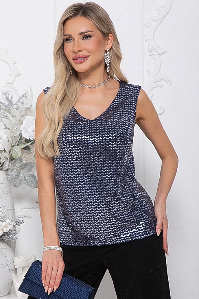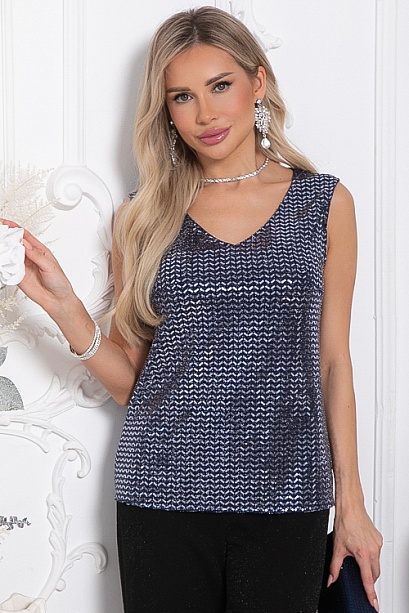 Топ из трикотажа с пайетками. 30% вискоза,65% п/э,5% лайкра Комментарии к товару