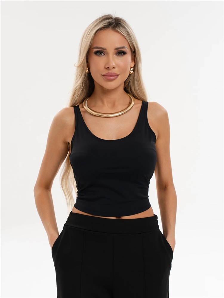 Топ прилегающего силуэта из эластичного плотного трикотажа бифлекс.