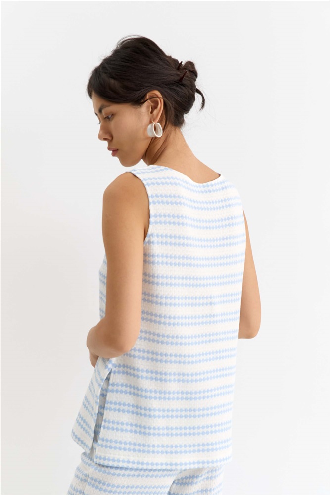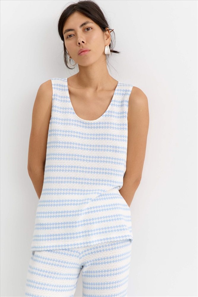 Состав: 50% Вискоза 50% ПЭ Длина: 65 см. (42 размер), 67 см. (52 размер) Цветовая гамма: Молочный/голубая полоса Силуэт: Свободный Принт: Да Коллекция: Весна #2 Удлиненный топ из фактурного трикотажа. Модель свободного силуэта. В боковых швах разрезы. Комментарии к товару