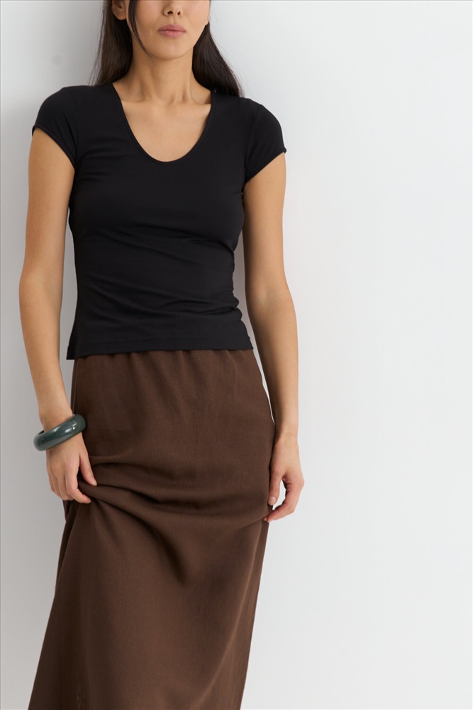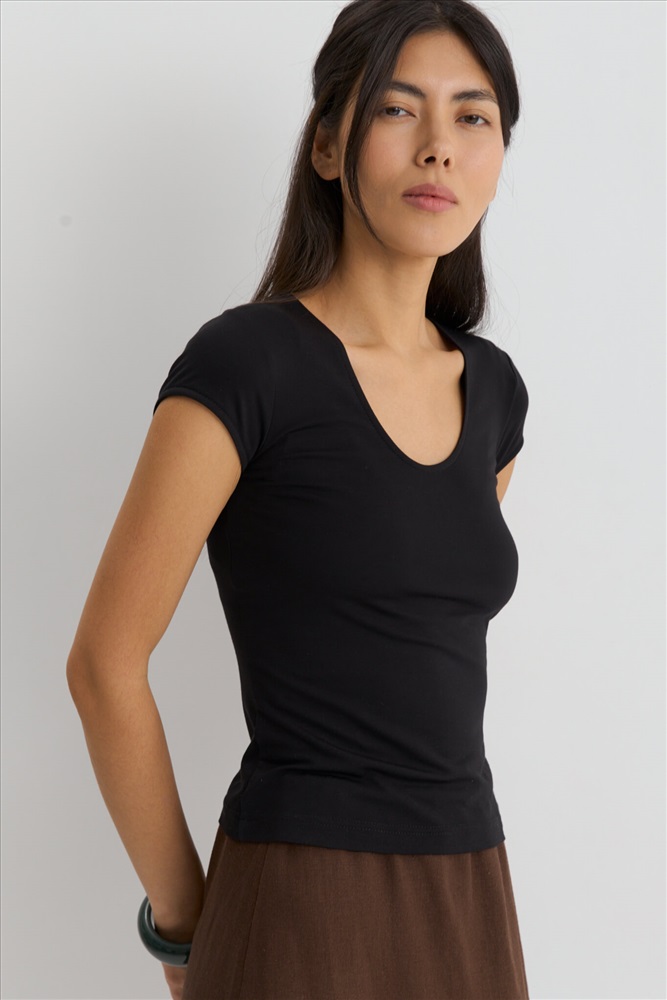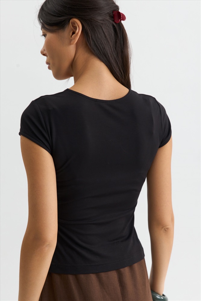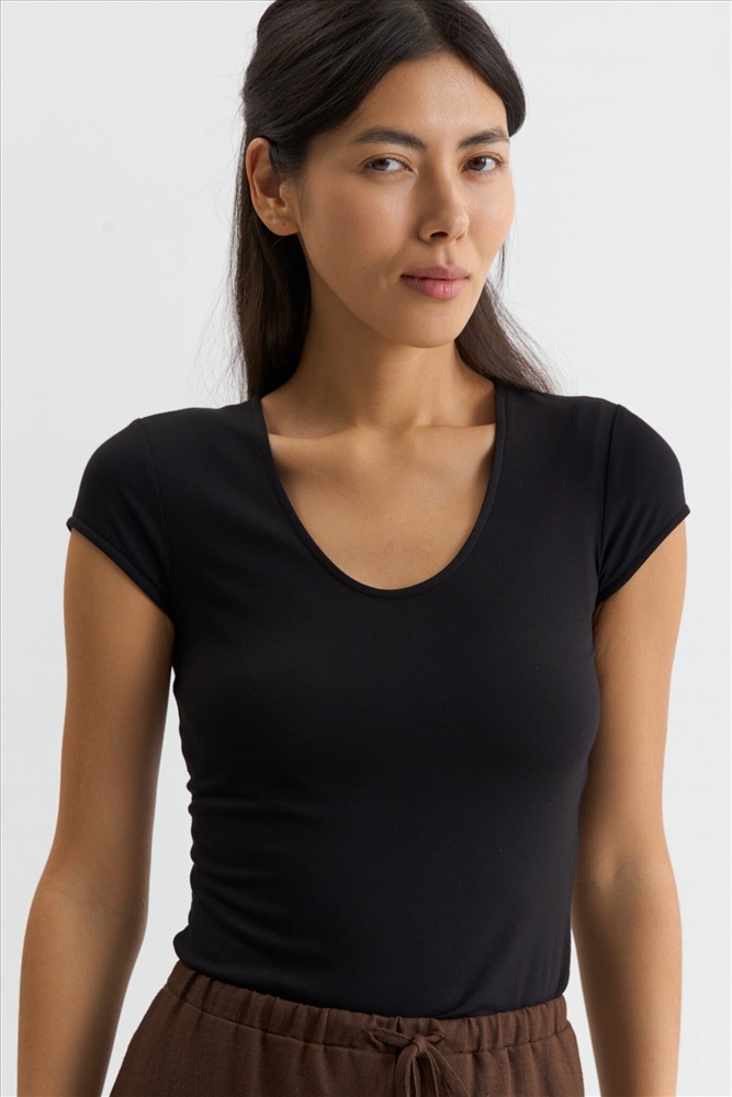 Состав: 95% Вискоза 5% Эластан Цветовая гамма: Черный Силуэт: Прилегающий Принт: Нет Коллекция: Лето #3 Блуза в стиле skims из гладкого трикотажного полотна. Модель прилегающего силуэта. Рукав втачной, короткий. Горловина оформлена бейкой. Комментарии к товару