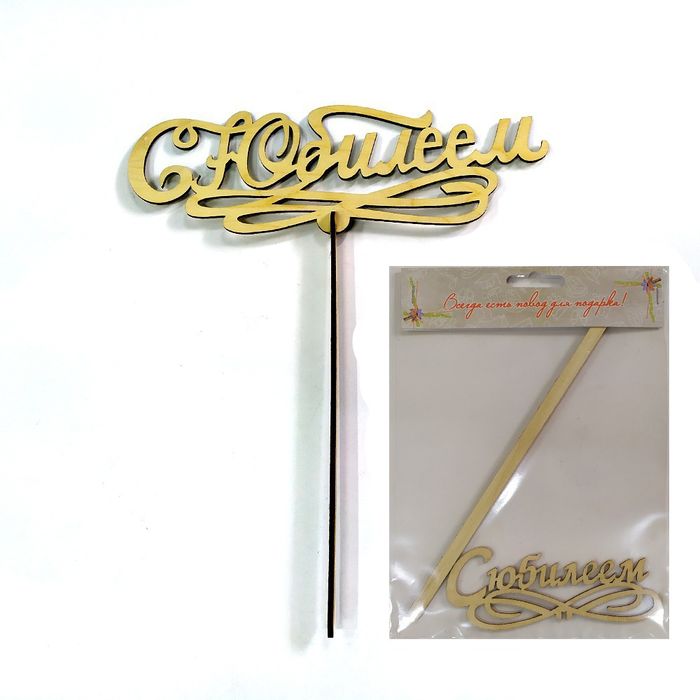 Топпер дерев. С Юбилеем 2 маленький, в упаковке