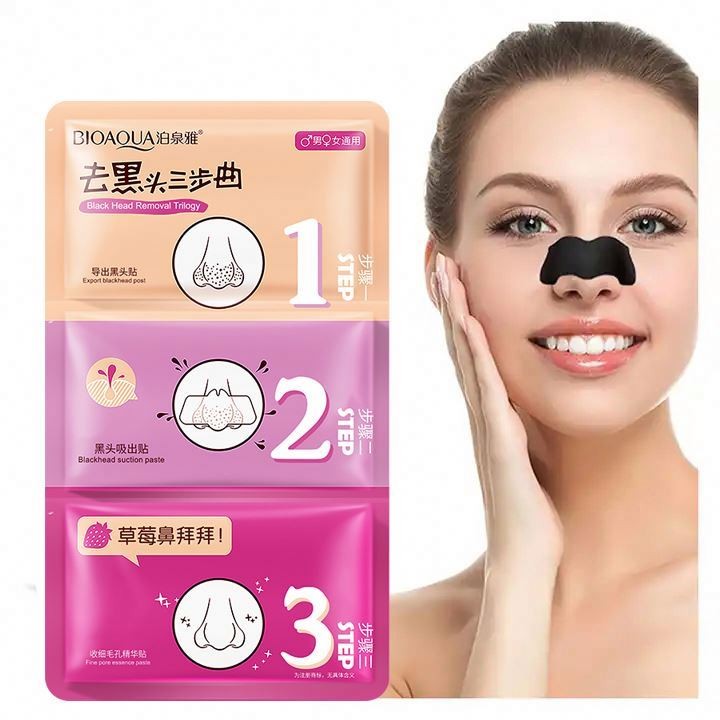 Трехступенчатая система очистки пор от черных точек представляет собой 3 пластыря для глубокого очищения разного уровня. 1 - открывает поры и растворяет кожное сало и черные точки. 2 - впитывает грязь и удаляет ее. 3 - стягивает поры и смягчает кожу.