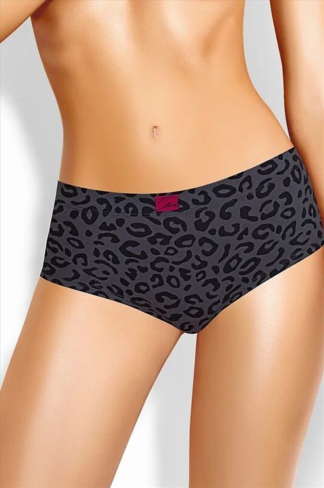 Трусы шорты женские из эластичного хлопкового полотна. Обработка краев по талии - широкая внутренняя резинка, по ноге - подгибка. По переду нашивка.