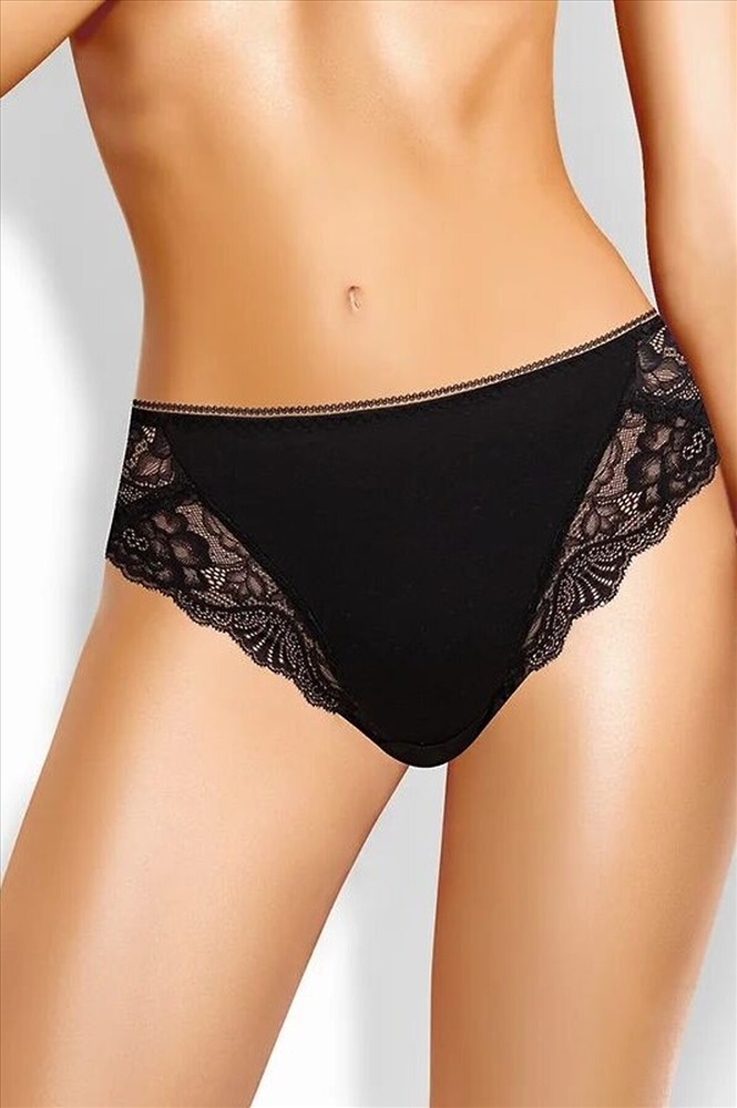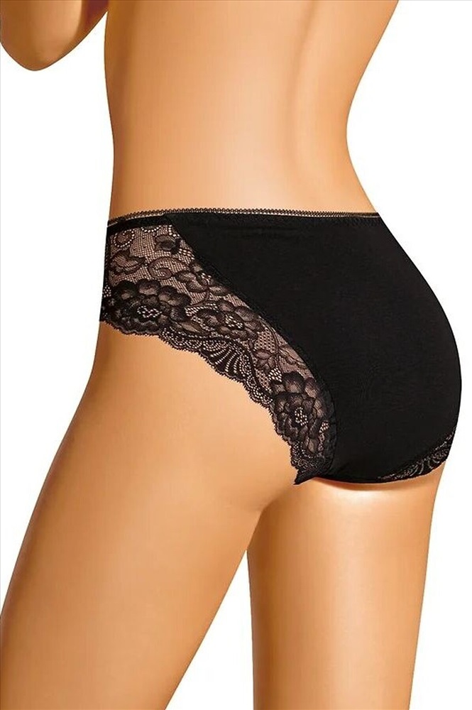 Трусы слипы женские из эластичного хлопкового полотна. По переду и спинке рез с кружевными вставками. Обработка краев по талии ажурная резинка (точечный зигзаг).
