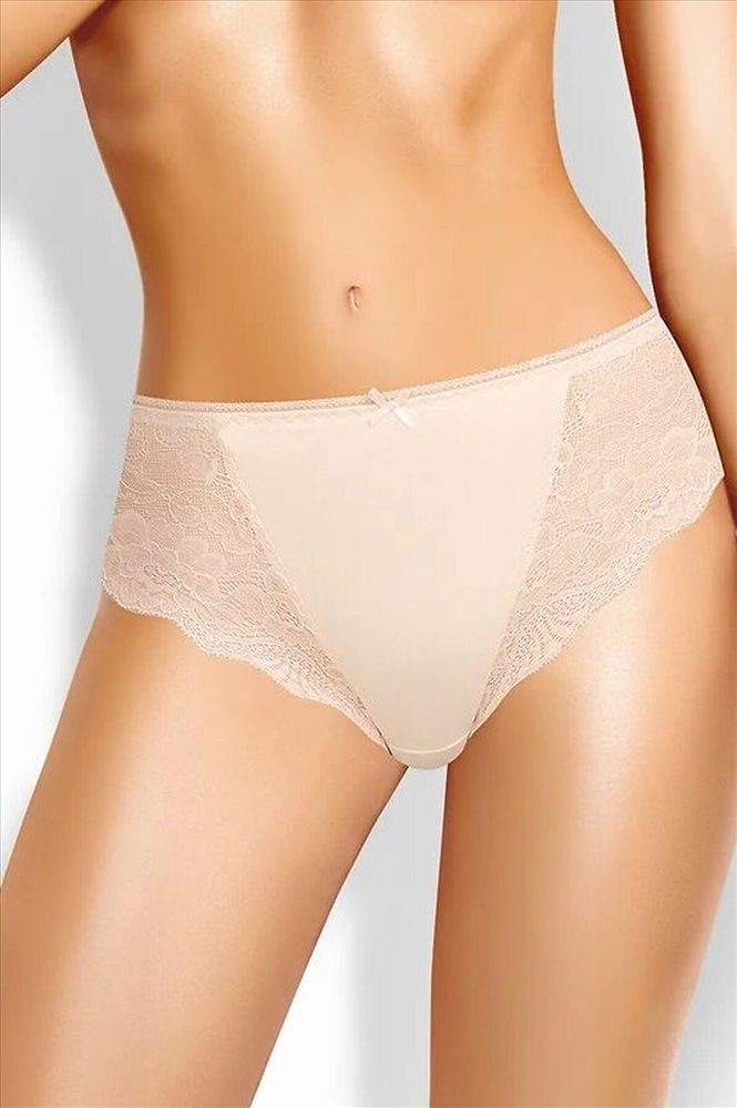 Трусы слипы женские из эластичного хлопкового полотна. По переду рез с кружевными вставками. Обработка краев по талии и ноге ажурная резинка (точечный зигзаг). По переду атласный бант.
