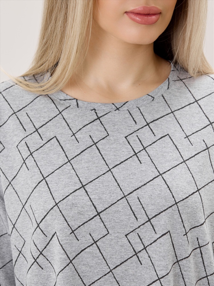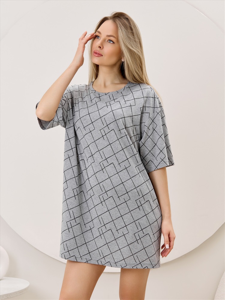 Ткань: Кулирка (меланж) Туника молодежная из трикотажного меланжированого полотна «кулирка» прямого силуэта, с короткими втачными рукавами, горловиной овальной формы, обработанной притачной бейкой из основного материала.